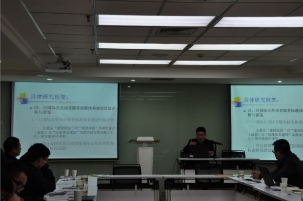 1月16日下午、17日上午,《我国公共体育服务标准体系研究》课题组首先介绍了课题的整体进度和后续计划,各子课题负责人分别作了成果汇报及下年度研究计划;然后围绕各子课题逐一讨论,在研究方法、研究方向和研究进度等各方面进行了把控,对研究的重难点展开了深入探讨。